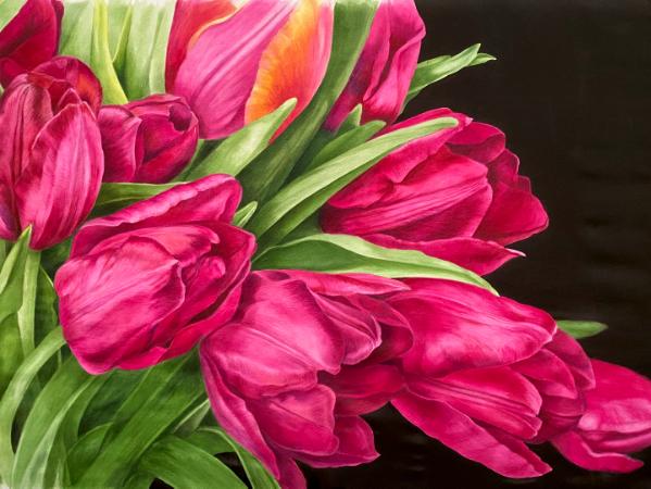 Karen Sistek did a paint around the world during the early Covid19 days, when we were all feeling isolated. This helped us to feel connected. We all painted the same painting on silk. The photograph was taken by Jorge Aguilar and he gave us all permission to us it. Thank you Jorge!!! And thank you Karen Sistek for organizing the group painting. The painting is mounted on a 24 x 26 canvas